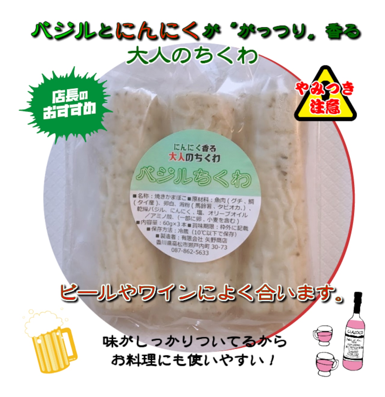 筋肉ちくわをまるごと1本使用した、若松様とのコラボ商品です。まるごと1本筋肉ちくわがのったビジュアルが特徴的なラーメンです。